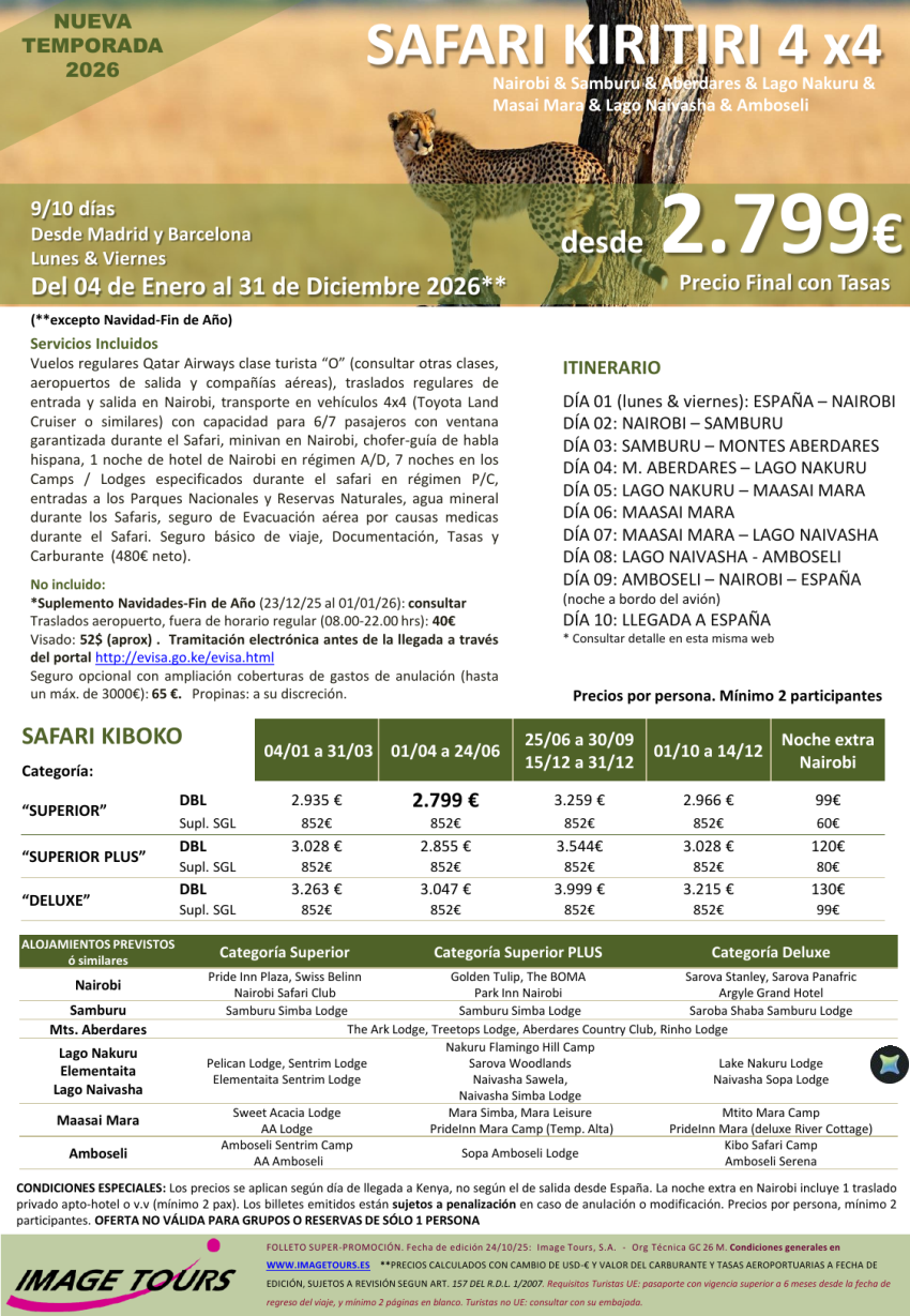KENYA Kiritiri 2026: Samburu & Aberdares & Nakuru & M. Mara & Naivasha & Amboseli, dsde 2.805€ tasas incluidas